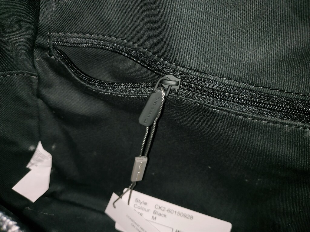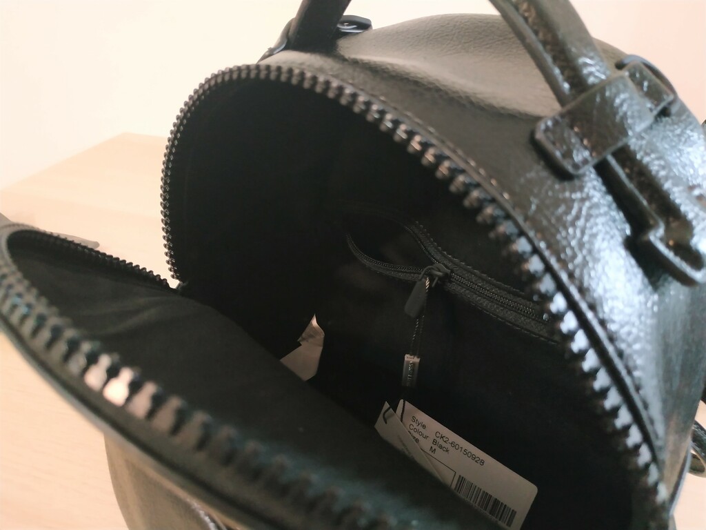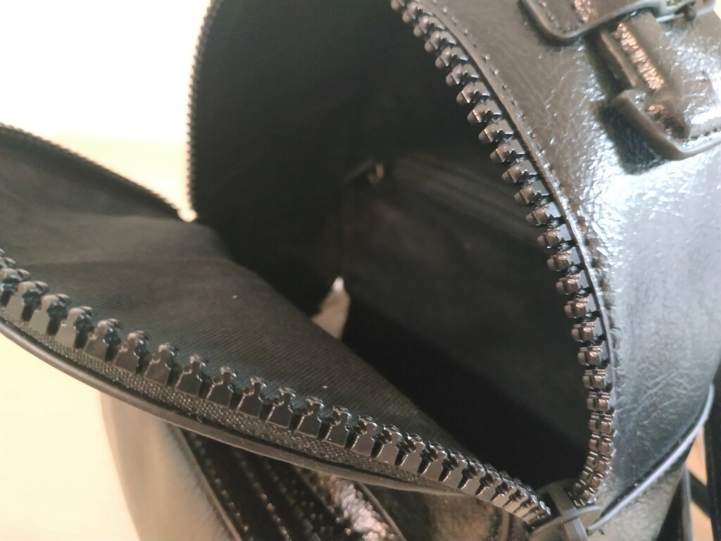 最後是包包內部,抱歉因為裡面很黑所以有點難拍,可能看不太清楚細節,但只是想讓你看一下裡面布料的質感~ 然後它也有一個內袋,上面拉鍊有刻 Logo,也是我愛的黑色霧面材質 😍