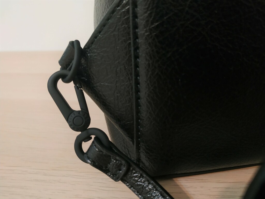 再給大家兩個不同角度,覺得它本體和前面比較小那層都厚厚的很可愛 >__< 俯視圖中可以看到一些小扣環,可以將背帶從原本的原廠設定雙肩背改扣在上面變換不同背法、造型~