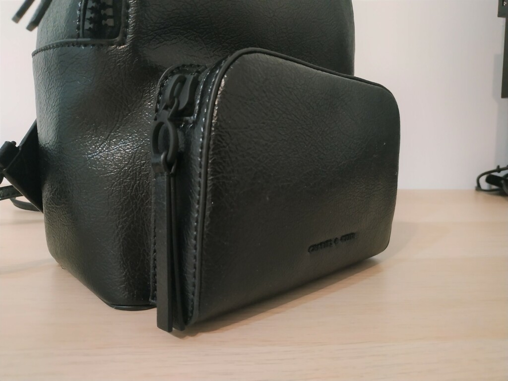 我收到的這個包包有一個小小缺點,就是它身上前口袋那邊有一些殘膠,但用橡皮擦就可以毫無痕跡的輕鬆去除,所以使用上沒有影響~